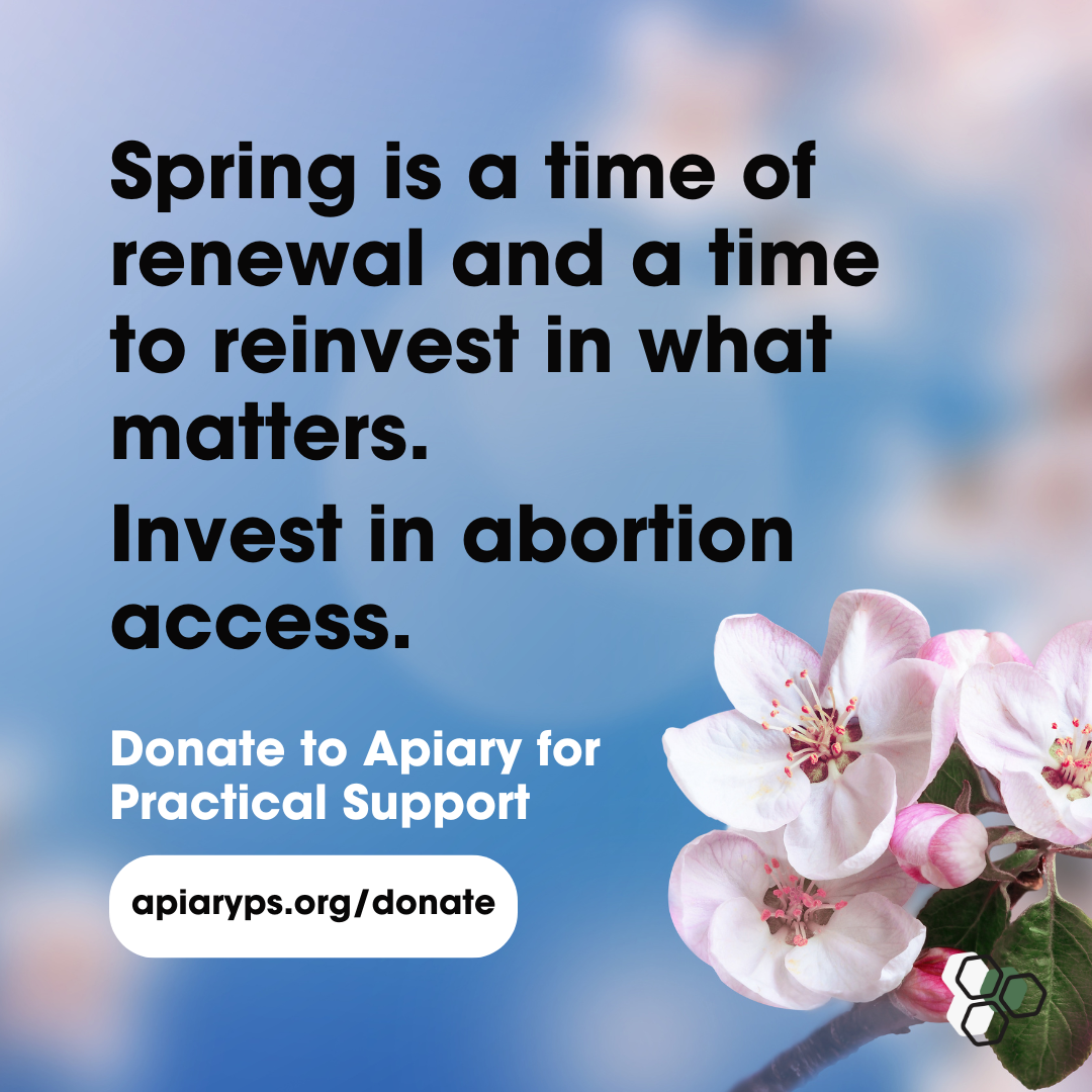 Show up for the practical support workers who show up for abortion seekers. As an added bonus, if you become a recurring donor during the month of May, we'll send you some Apiary merch and goodies as a thank you!